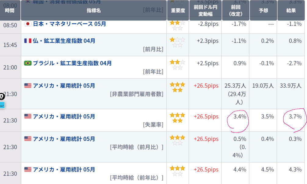 6月2日雇用統計の結果でましたね。発表時は乱高下して戸惑った方も多かったのではないでしょうか?僕は???だらけでした。